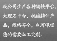 全意鑄鐵平臺(tái)平板廠(chǎng)家專(zhuān)注生產(chǎn)T型槽鑄鐵平臺(tái),大理石氣浮實(shí)驗(yàn)石平臺(tái),han接鑄鐵平臺(tái),裝配鑄鐵平臺(tái),檢測(cè)測(cè)量大理石平臺(tái),試驗(yàn)鑄鐵平臺(tái),測(cè)量大理石平板,T型槽平臺(tái),電機(jī)試驗(yàn)平臺(tái),三坐標(biāo)測(cè)量平臺(tái)等鑄鐵平板來(lái)圖加工定做業(yè)務(wù),以合理的價(jià)格,專(zhuān)注的技術(shù)服務(wù)于國(guó)內(nèi)外客戶(hù),互利合作,共同發(fā)展!公司位于河北交河開(kāi)發(fā)區(qū),京滬鐵路、104國(guó)道、106國(guó)道、京福高速公路橫穿而過(guò),與我國(guó)的兩大直轄市北京、天津近在咫尺,地理位置優(yōu)越,交通非常便利。我公司本著以誠(chéng)納客”“嚴(yán)把質(zhì)量關(guān)”“價(jià)格優(yōu)惠”“用戶(hù)至上的原則,幾十年兢兢業(yè)業(yè),受到用戶(hù)的一致好評(píng)!